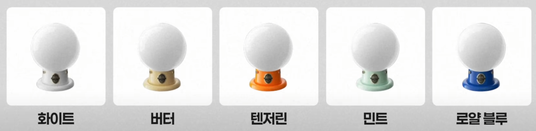 화이트, 버터, 텐저린, 민트, 로얄 블루 등 다양한 컬러 중 특히 톡톡 튀는 컬러가 인테리어 포인트가 되어줘요. 밝기와 색온도 조절이 가능한 디머 스위치도 적용되어 있어 실용성까지 챙긴 조명입니다 ✨