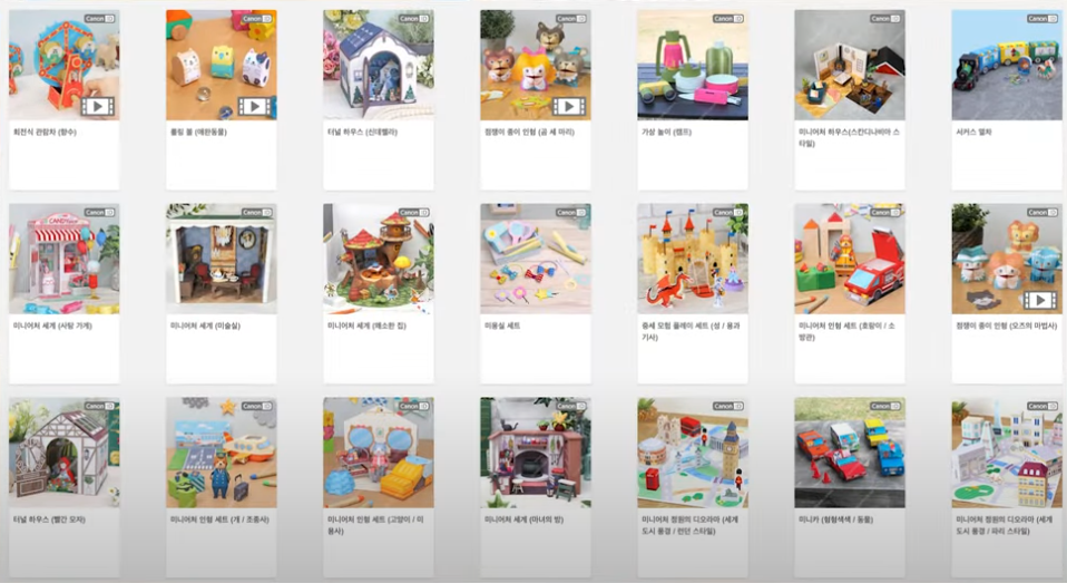캐논만의 크리에이티브 파크 서비스도 정말 유용해요. 간단한 회원가입만 하면 다양한 도안과 퍼즐, 장난감 도면을 무료로 다운로드 받을 수 있어서 아이들과 함께 종이 공작하기에도 딱입니다. 놀이도 되고, 창의력도 키울 수 있으니 1석 2조죠!