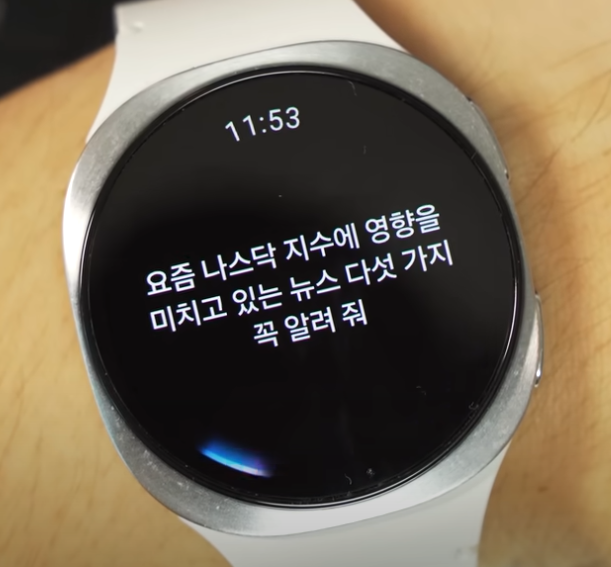 이제는 워치에서도 AI 어시스턴트를 쓸 수 있습니다. 홈 버튼을 길게 누르면 구글 제미나이가 실행되는데요. 단순히 "엄마에게 전화 걸어줘" 같은 기본 명령뿐 아니라, "오늘 꼭 알아야 할 뉴스 5가지 알려줘" 같은 요청도 이해하고 답해줍니다. 주식이나 경제 뉴스를 요약해 확인할 수 있어서 대화 주제도 풍성해지고, 시장 분위기 파악에도 유용합니다.