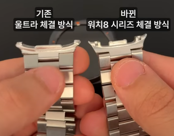 또 하나 달라진 점! 스트랩 체결 방식도 살짝 변경됩니다. 기존 울트라나 워치7과 달리 가로 폭이 조금 좁아져서 워치8 전 모델에 호환될 수 있게 구조가 바뀌었어요. 그래서 기존 울트라나 워치7 스트랩과는 호환이 안 된다고 하니 참고하셔야 합니다.