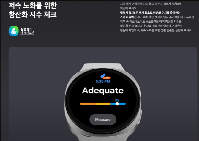 새로 추가된 건강관리 기능도 눈길을 끕니다. 항산화지수 측정은 물론, 스트레스가 높으면 시계가 실시간으로 "진정하라~"고 알려주니 직장인분들께 유용하겠죠?