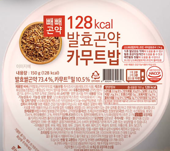 혈당 관리에 관심 있으신 분들께 추천해요. 발효 여주 곤약쌀이라서 혈당 스파이크를 낮추는 데 도움을 준다고 알려져 있어요. 곤약 함량은 57% 정도로 밥 식감도 어느 정도 느껴지고 칼로리는 155kcal, 탄수화물은 29g 정도 됩니다.