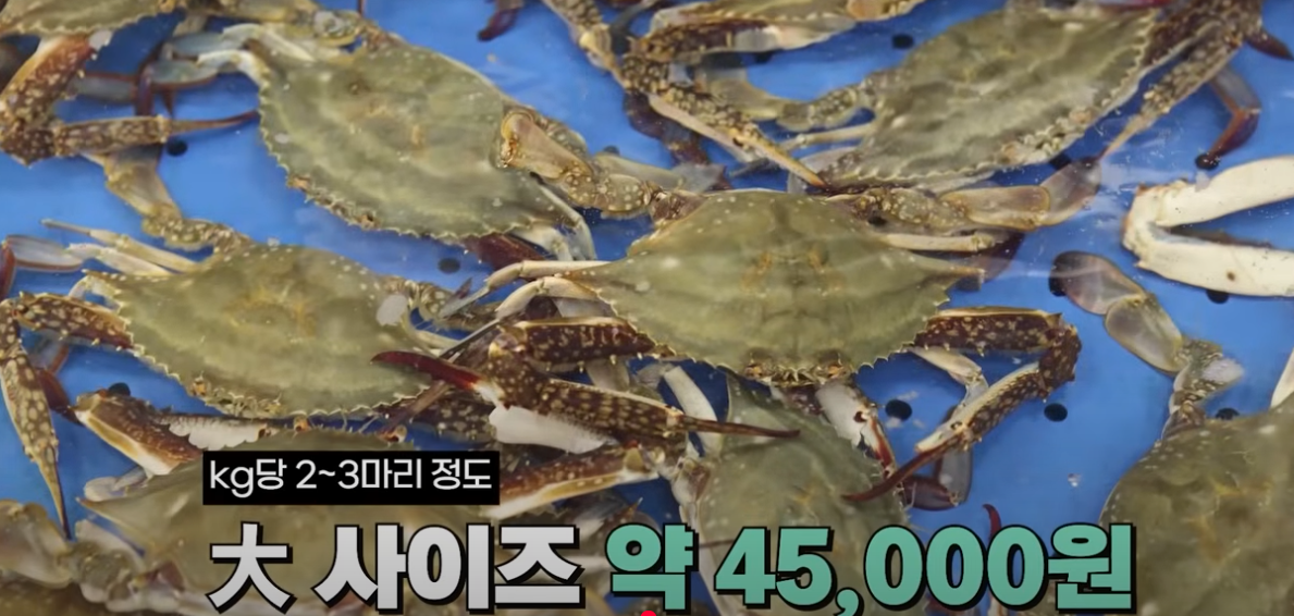 서울·수도권은 인구가 밀집해 있는 만큼 꽃게 수요도 많습니다. 그중 대표적인 곳이 바로 노량진 새벽 도매시장인데요. 일반 소매점보다 가격이 저렴한 편이지만 10kg 단위 망으로 판매되는 경우가 많아 혼자 사기엔 부담이 될 수 있습니다. 이럴 때는 친구들이나 가족과 함께 구매해 나눠 가지면 좋습니다. 최근 시세를 보면, 암게 소자는 1kg당 약 1만 9천 원, 대자는 4만 5천~4만 6천 원 정도로 거래됩니다. 대자 이상은 두세 마리만 들어가도 묵직해 특대급으로 불리죠.