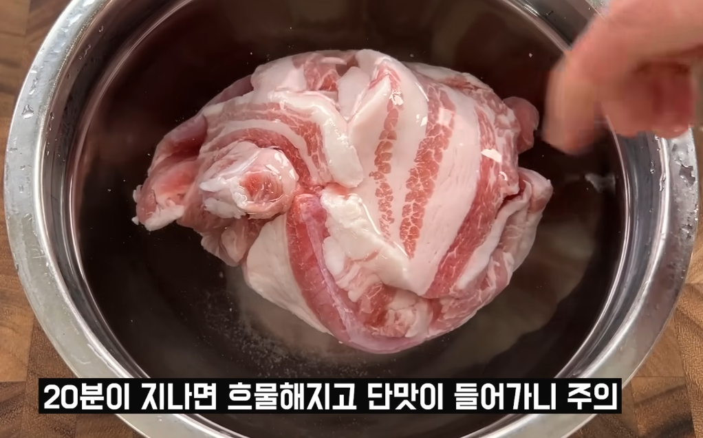 - 고기를 밀폐된 상태로 그릇에 넣고 찬물을 가득 받아주세요.