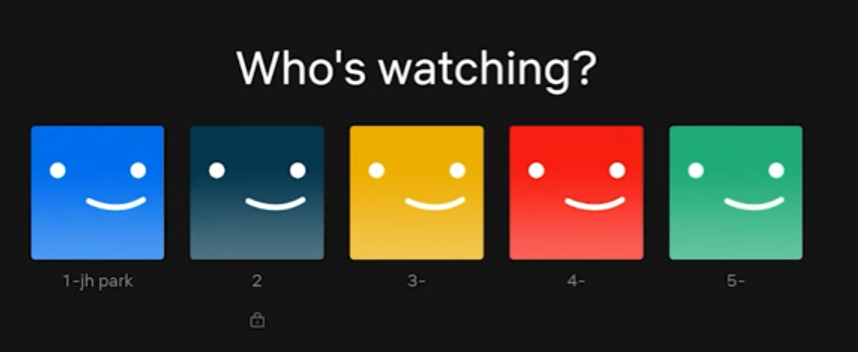 로그인 후 프로필(Profile) 아이콘 클릭 → 계정(Account) 클릭 → 프로필 관리(manage profiles) 클릭 → 본인 프로필 선택 → 프로필 잠금 선택 → 넷플릭스 계정의 암호 입력(겜스고의 비밀번호 확인) → 체크 항목 클릭 후 프로필 암호를 입력한 다음 저장 → 프로필 암호 설정 완료