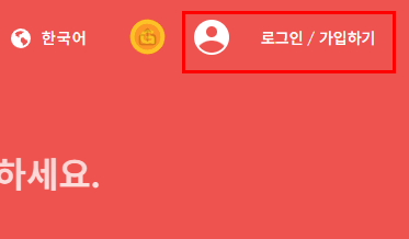 2. 오른쪽 상단의 [로그인 / 가입하기] 클릭