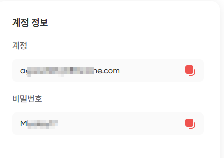 나의 구독 메뉴에 들어가면 마켓 판매자 카테고리에서 주문 정보를 확인할 수 있고, 클릭해서 들어가면 나의 계정과 비밀번호를 확인 할 수 있어요.