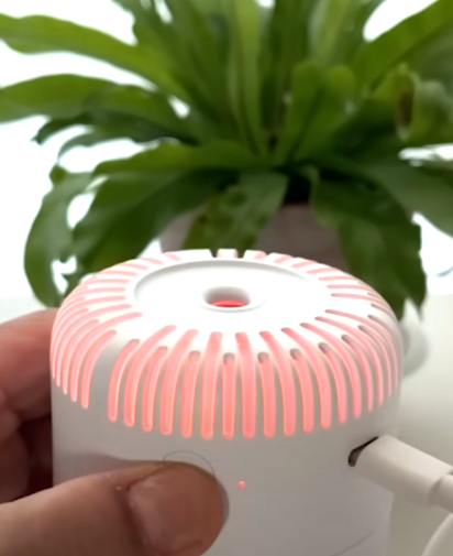 방향 전환 가습기는 방향을 자유롭게 바꿀 수 있어 건조한 계절에 화분의 습도 관리에 유용하며, 45도씩 움직여 원하는 방향으로 가습이 가능합니다. 세 가지 색상으로 변하는 무드등 기능도 있어 비가습 계절에는 간접 조명으로 활용할 수 있습니다. USB 케이블로 전력을 공급하며, 야외 사용 시 보조 배터리가 필요할 수 있는 실용적인 제품입니다.