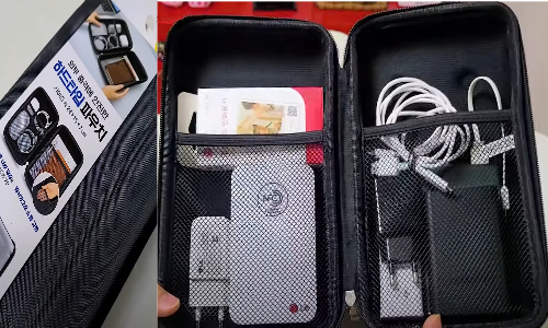 보조배터리나 충전기 같은 전자 기기를 안전하게 보관하려면 하드 타입 파우치가 필수입니다. 내부가 쿠션 처리되어 있어 외부 충격으로부터 보호할 수 있으며, 내부 수납공간이 있어 선 정리도 편리합니다.