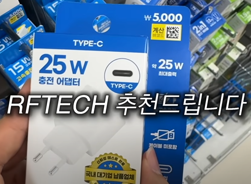 - 어댑터: 다이소 RF Tech 25W PD 충전기 (5천 원)