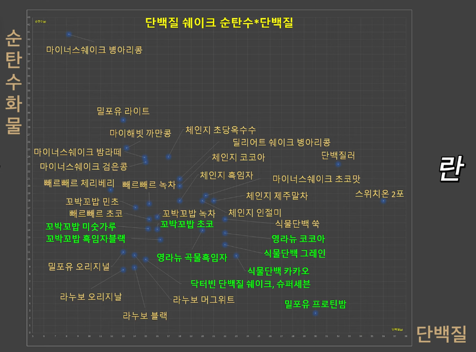 단백질과 순탄수화물을 기준으로 표로 정리해보았습니다. 내가 단백질 쉐이크를 사야할 때 무엇을 기준으로 사야할 지 보고 고르시면 됩니다.