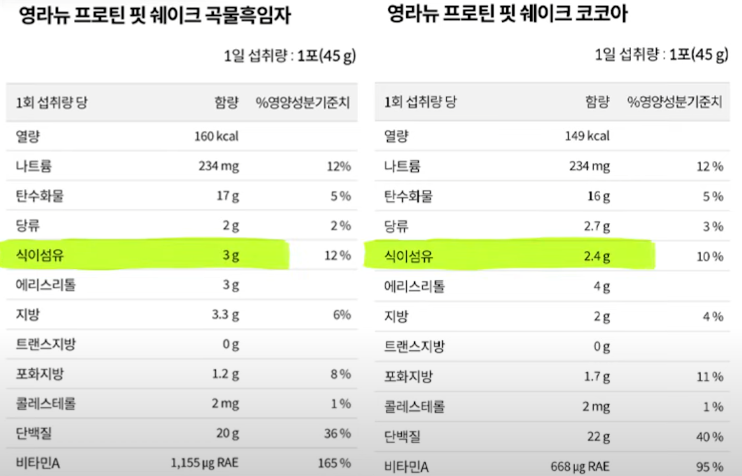 다만 식이섬유 함량이 조금 아쉬워서 저는 샐러드나 따로 식이섬유 파우더를 곁들여 먹었어요.