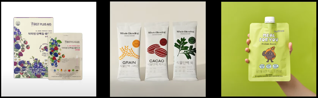 조금 특이했던 제품으로는 닥터빈 단백질 쉐이크 슈퍼세븐, 홀블렌딩 식물단백 쉐이크, 소이프롬 밀포유 같은 식물성 단백질 라인이에요. 닥터빈의 경우 슈퍼세븐 컬러 채소 컨셉이라 필요한 영양성분 배합을 강조하고, 치아씨드가 들어 있어서 상큼한 맛이 특징이에요. 다만 기본 단백질 함량이 13~15g 정도로 살짝 아쉬운 분들은 우유나 두유에 타서 드시면 조금 더 든든해요.