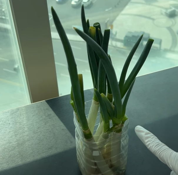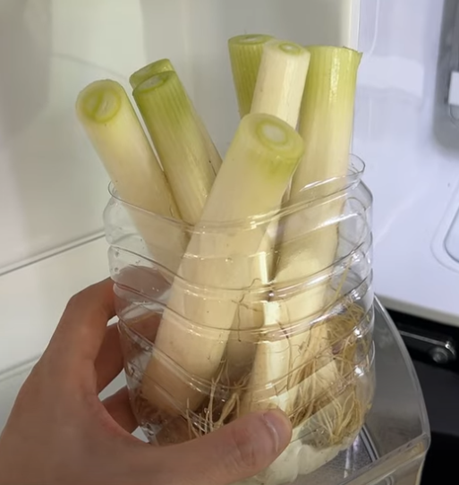 3. 거기에 대파 뿌리 부분을 넣고 햇볕이 잘 드는 곳이나 냉장고에 두면 끝!