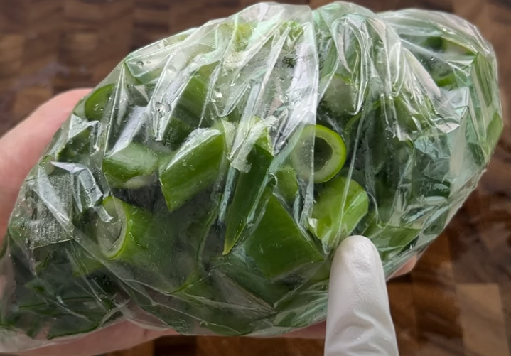 앞 부분은 한 번 헹군 뒤 칼로 송송 썰어서 지퍼백에 담아 냉동 보관해 주세요. 나중에 라면이나 국 끓일 때 그냥 꺼내서 톡 넣으면 끝! 간편하죠?