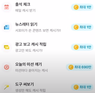 이 모든 걸 하면 하루 5분 투자로 쏠쏠하게 캐시가 쌓이더라고요. 버스 기다리는 시간, 점심 먹고 쉬는 시간에 해보세요. 생각보다 금방 모입니다!