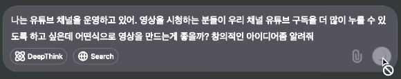 - 딥시크는 시리즈 콘텐츠 기획, 스토리텔링, 챌린지 영상 등 다양한 아이디어를 구체적으로 제안했습니다.
