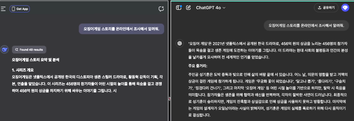 - 동일한 명령어를 두 AI에 입력하여 답변 비교