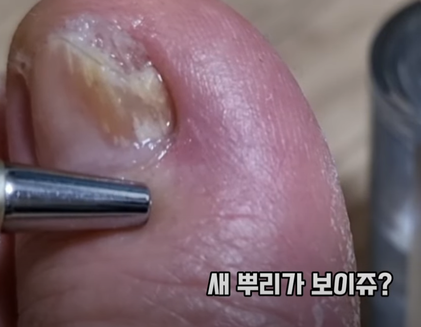 사용 약 한 달 차에는 엄지발톱 뿌리 쪽에서 새로운 정상 발톱이 조금씩 자라는 게 보였습니다. 20년 동안 시도해온 치료제 중에서는 처음으로 ‘뭔가 변하고 있나?’라는 기대를 하게 되었죠. 사용 2개월 차까지는 발톱 색이 약간 옅어지고 새 발톱이 올라오는 듯한 모습이 보였습니다.