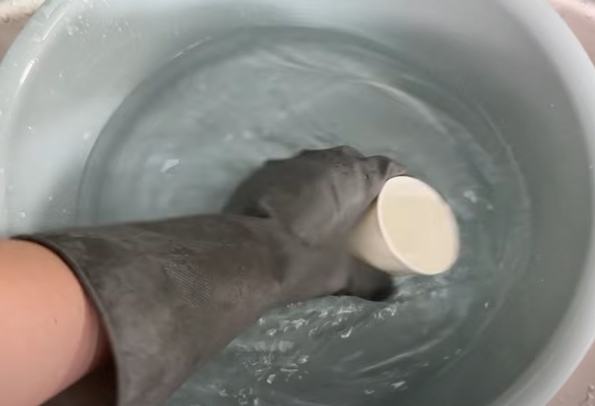 - 종이컵으로 받은 뒤 변기 물탱크 안에 락스물 부어주기