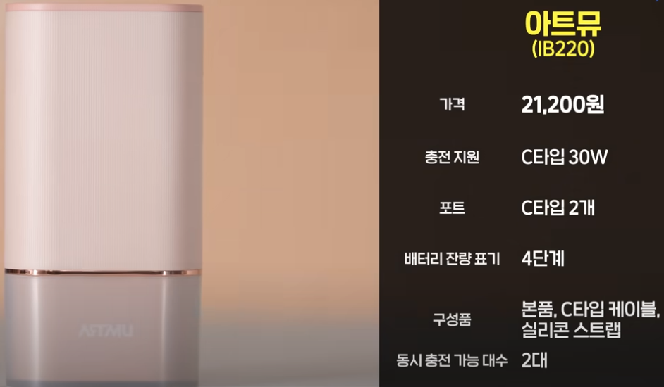 깔끔한 디자인과 실용성 모두 갖춘 제품. USB A to C 케이블 포함이며, 최대 3대 동시 충전이 가능해요. 무선 기능도 안정적이었습니다.