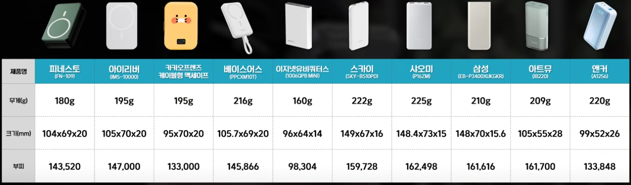 🔋 보조 배터리 비교 및 추천 제품