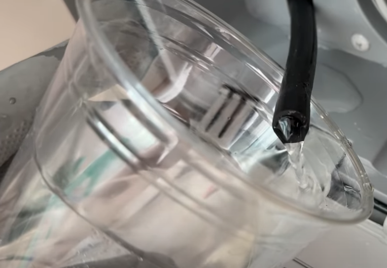 - 뚜껑 열고 고무호스 안의 물 빼기
