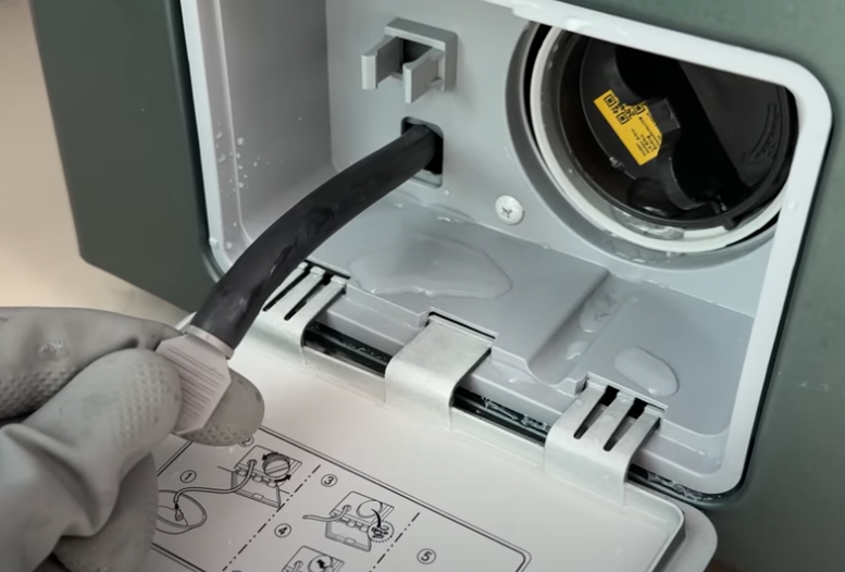 - 대부분 세탁기 앞쪽 하단에 작은 문처럼 생긴 커버가 있어요. 그걸 열면 고무호스가 나옵니다.