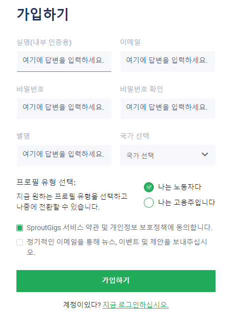 스프라우트 깁스(SproutGigs) 홈페이지 주소