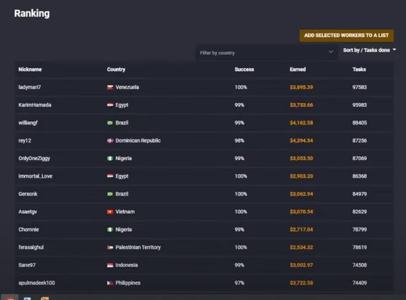 Ranking에 들어가 보시면 수익 랭킹을 보실 수 있는데 대략 한화로 평균 200~500만원 버시는 분들이 많이 보입니다. 물론 랭킹이 높은 사람들이니까 이런 수치인 것 같지만 이 정도 까진 아니더라도 어느 정도만 하시면 100만원 이상 충분히 벌 수 있습니다.