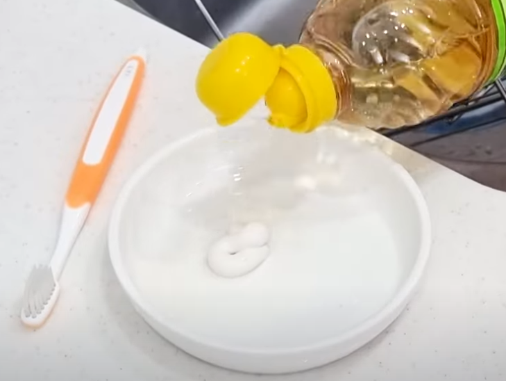 - 치약을 적당히 짜고 식초를 소량 섞어 잘 섞어줍니다.