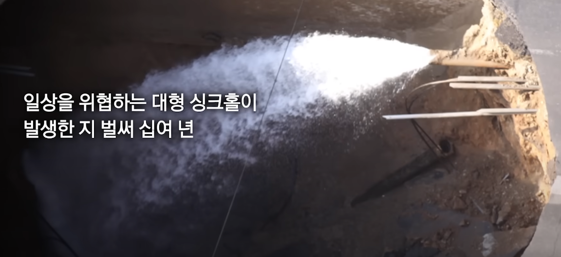 - 오래된 상하수도관이 터지면서 물이 흙을 함께 빼내 토양에 빈 공간이 생깁니다.