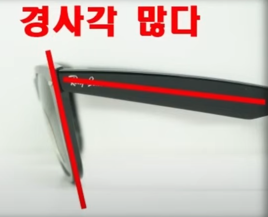 - 경사각이 심한 안경태: 안경을 썼을 때 렌즈가 아래로 심하게 기울어져 있다면 흘러내릴 확률 200%. 렌즈는 수직에 가깝게 있어야 착용감도 좋고, 무게 균형도 맞습니다.