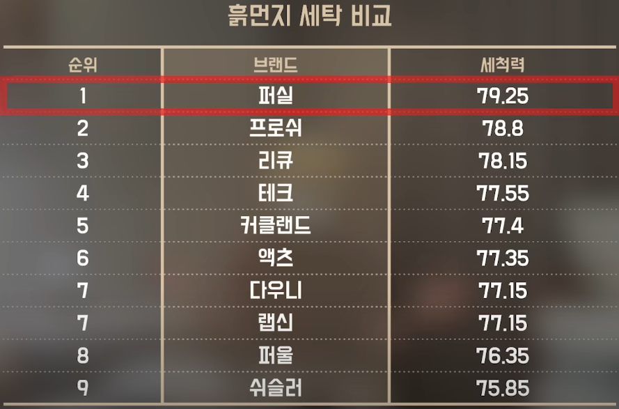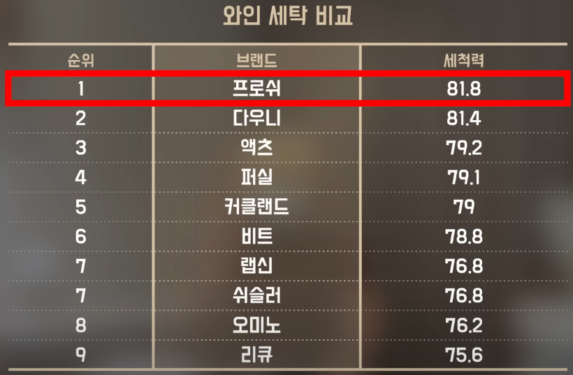 | 세척력이 가장 우수한 제품 | 프로시 |