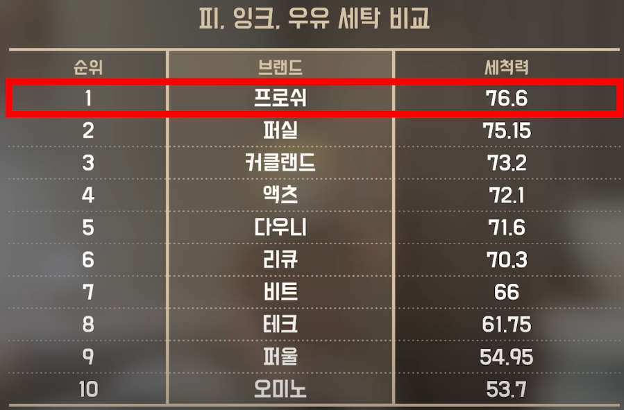 | 세척력이 가장 우수한 제품 | 프로시 |