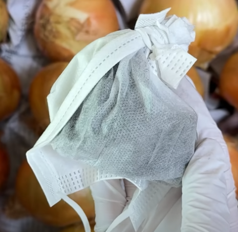 사용법도 간단해요! 남은 천이나 사용하지 않는 마스크 안에 숯을 넣고 양파 보관함에 함께 두면 끝.