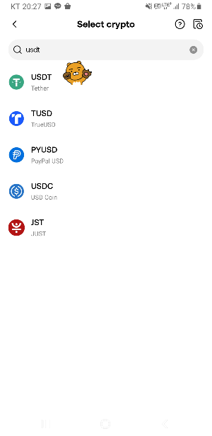 - 디지털 자산 선택에서 USDT를 등록하려면 USDT(Tron 네트워크, TRC20)를 선택합니다.