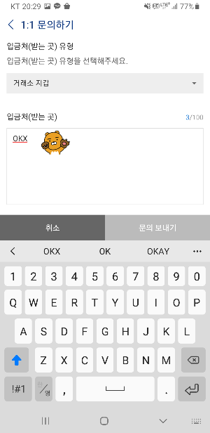 5. 입금처(받는 곳)에는 ‘OKX’라고 입력합니다.