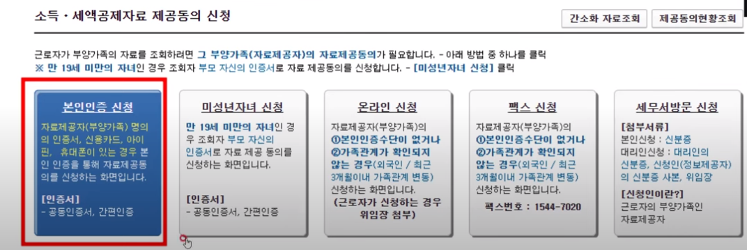 부양가족이 있을 경우 자료 제공 동의 신청을 해줍니다.
