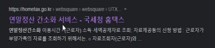 네이버나 구글에서 연말 정산 간소화 서비스 입력하셔서 들어가거나 아래 링크로 국세청 홈텍스 홈페이지로 들어갑니다.