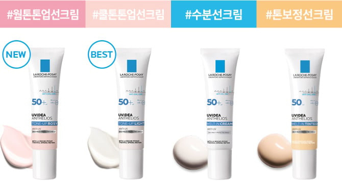 - 라로슈포제 유비데아 톤업 선크림: 가볍고 번들거림 없는 사용감으로 여드름성 피부에도 적합합니다.