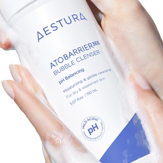 - 에스트라 아토베리어 365 버블 클렌징: 약산성 pH로 자극 없이 깨끗한 세안을 도와줍니다.