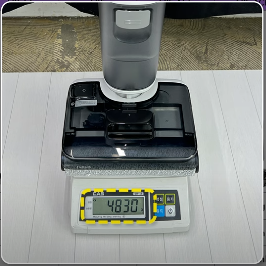 - 청소기 헤드 위에 물탱크가 있어 눌러 닦는 힘이 자동으로 작용
