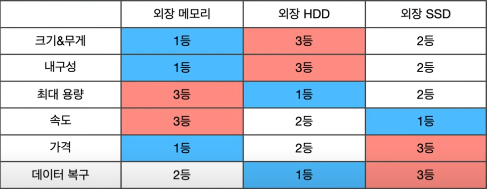 - 외장 메모리 (USB 타입) : 문서, 사진 몇 장 저장용 / 휴대성 최고