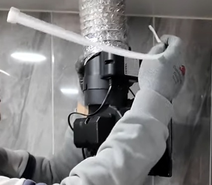 기존 환풍기 제거 → 타공 크기 조정 → 새 제품 고정 → 전원 연결 → 환풍 덕트 실링 → 마감