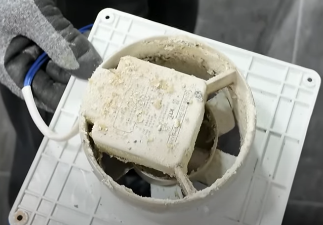 뚜껑을 열어보니 안에서 나온 건 먼지와 함께 싸구려 팬. 인테리어는 깔끔하게 했는데 환풍기 하나 때문에 전체 인상이 무너지는 상황이죠.