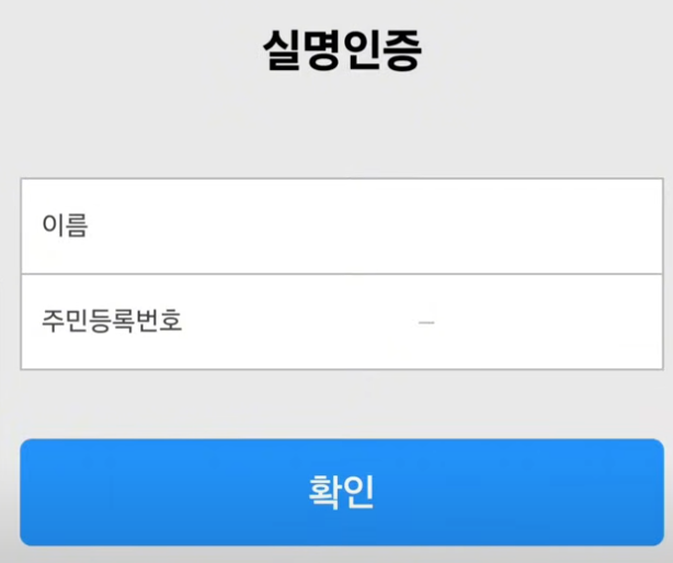 3. 이름·주민등록번호 입력 후 휴대폰 인증 진행 (통신사 선택 → 전체 동의 → 인증번호 입력)