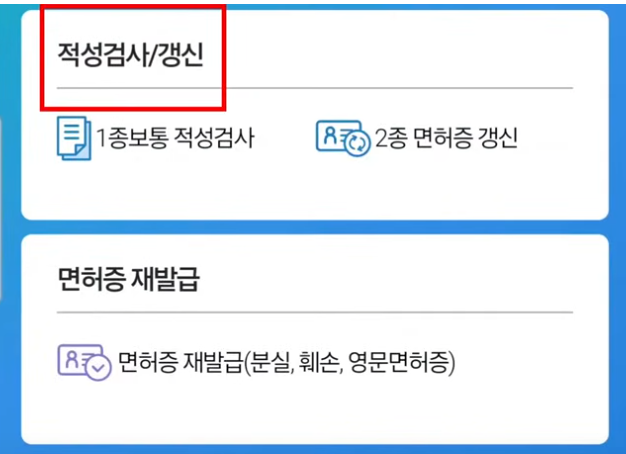 2. 운전면허 발급 → 적성검사·갱신 선택
