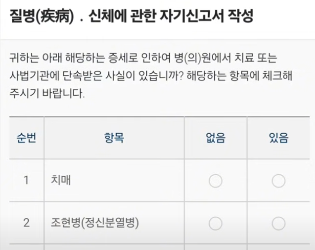 2. ‘해당 사항 없음’ 또는 해당 항목 체크