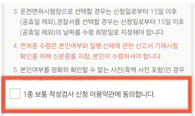 1. 이용약관·수수료 안내·면허 정보 확인 후 체크